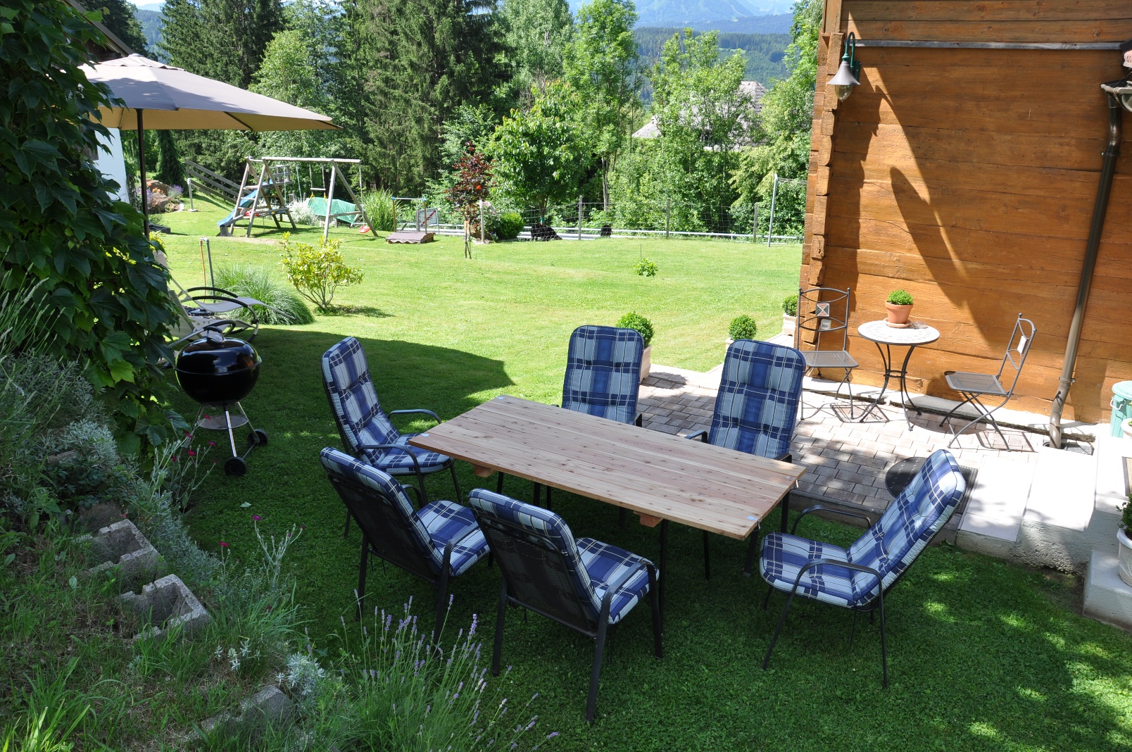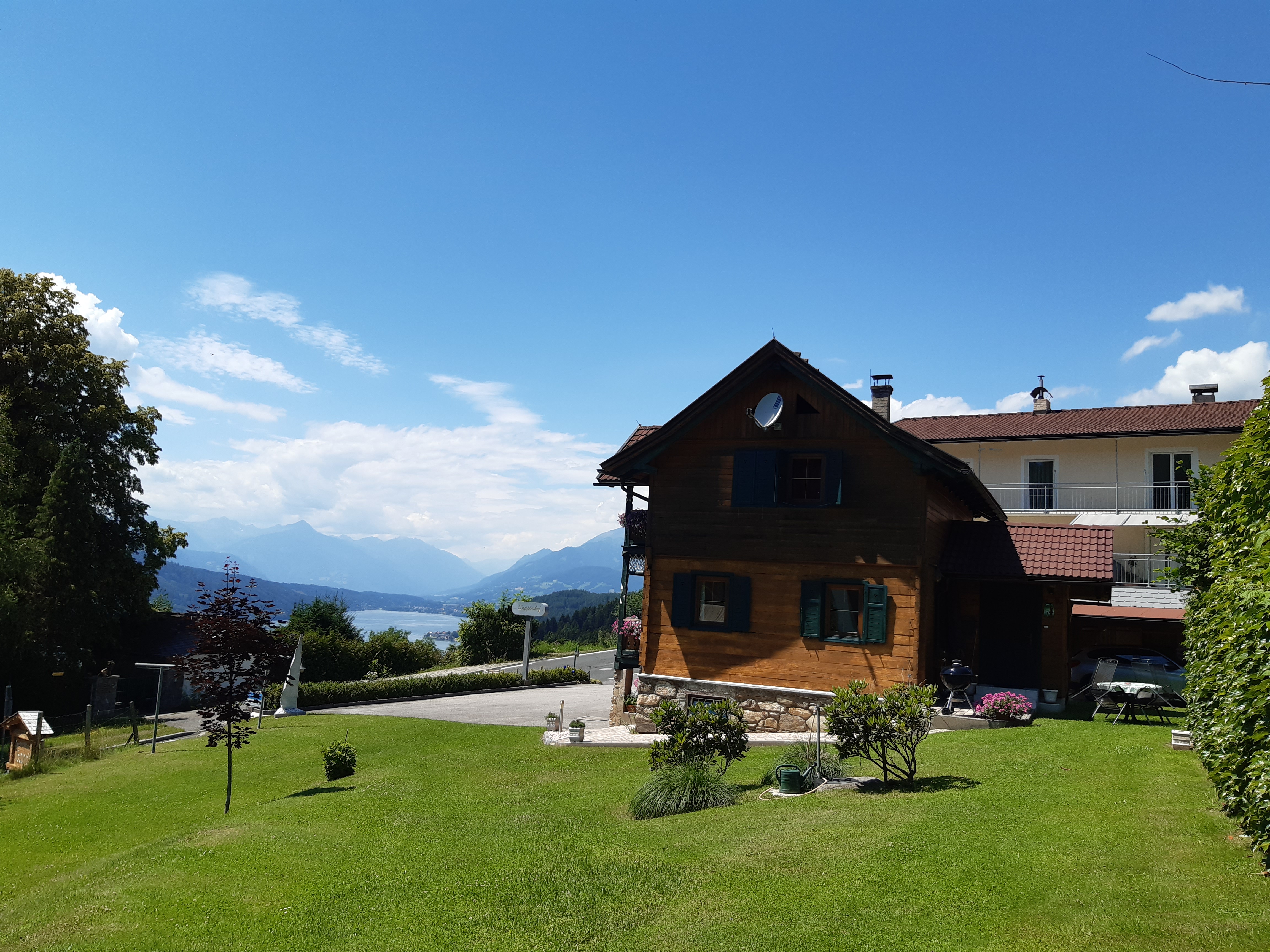 Unser Ferienhaus befindet sich in ruhiger, sonniger Lage oberhalb des Millstätter Sees. Das Haus verfügt über zwei überdachte Balkone mit Ausblick auf den See und das umliegende Bergpanorama. Der Höhenunterschied gemessen von der Seeoberfläche zu unserem Anwesen beträgt ca. 200 Meter (Fahrstrecke bis ins nächste Strandbad ca.1,5 km). Das nächstgelegene Strandbad in Dellach ist in zwei Minuten mit dem Auto und in ca. 20 Minuten zu Fuß über einen Wanderweg erreichbar. Parkplätze, sowie Einstellplätze für Motorräder und Fahrräder sind ausreichend vorhanden.